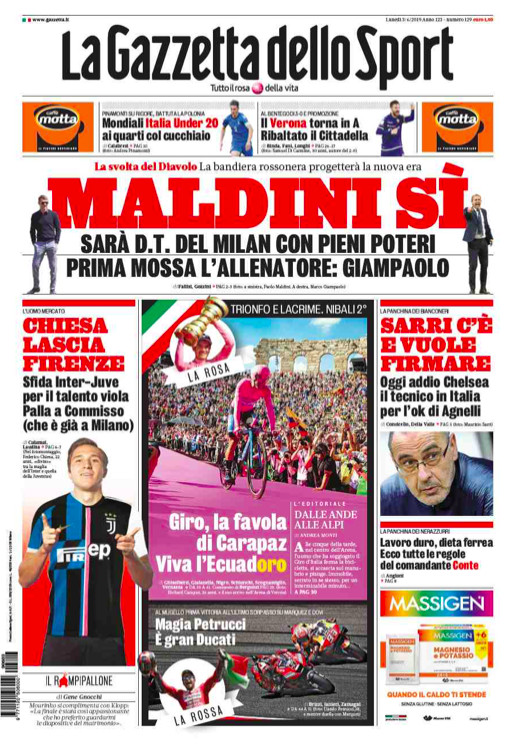 Tra calciomercato e campo. Dalle panchine 'calde' della Serie A alla promozione del Verona, fino ai verdetti dei playoff di Serie C con gli accoppiamenti della Final Four. Questi i principali temi sulle prime pagine dei quotidiani sportivi (e non) in edicola oggi.
