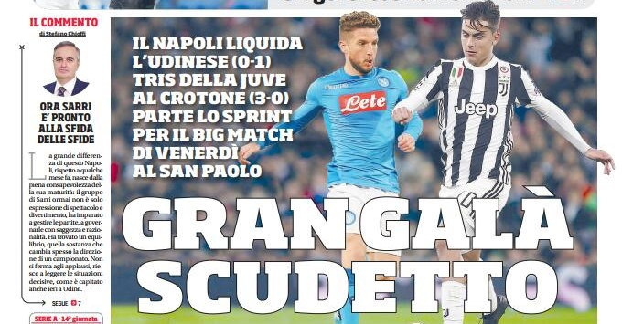 La Gazzetta dello Sport, invece, apre con: “E’ già Napoli-Juve”, in merito al big match di venerdì prossimo.