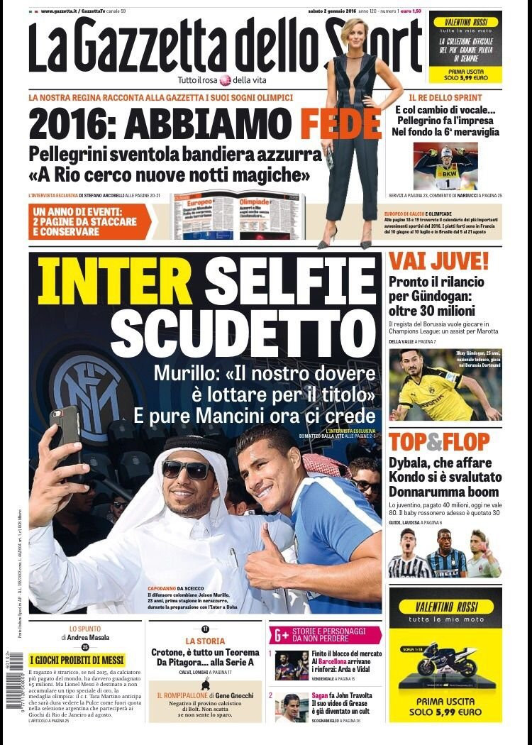 Si torna in edicola e le prime pagine dei quotidiani sportivi riaprono il campionato prima che si scenda di nuovo in campo. Torna dunque d’attualità la corsa al titolo che al momento vede tra le favorite la capolista, la formazione guidata da Mancini.