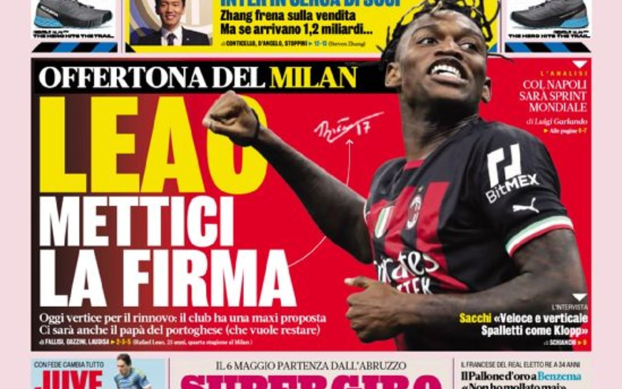 Karim Benzema ha vinto il Pallone d’Oro: ampio spazio sulle prime pagine all’attaccante del Real Madrid. Non solo premi internazionali ma anche locali. Sui quotidiani, infatti, spazio al Gran Galà del Calcio Italiano, in cui è stata stilata la Top XI della scorsa Serie A ed è stato nominato Leao come miglior giocatore. Non solo, spazio anche per le partite giocate ieri: Sampdoria-Roma e Lecce-Fiorentina.
