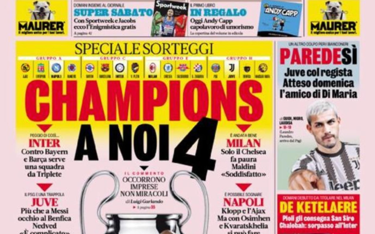 SCORRI IN BASSO PER LEGGERE LE PRIME PAGINE DEI QUOTIDIANI DEL 26 AGOSTO