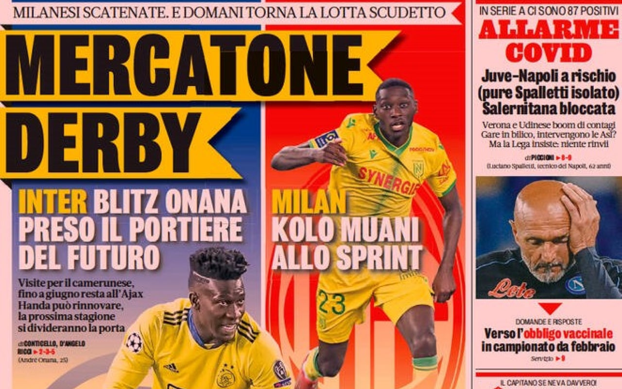 Le prime pagine dei quotidiani si concentrano sui numerosi focolai Covid formatosi nelle varie squadre di Serie A (qui l’elenco degli attualmente positivi). Ma c’è spazio, ovviamente, anche per il calciomercato, con la firma di Lorenzo Insigne con i canadesi del Toronto (qui le immagini).