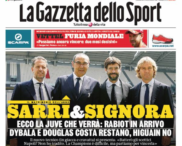 La presentazione di Sarri come nuovo allenatore della Juve, il calciomercato e il mondiale femminile. Tanti i temi presentati nella rassegna stampa di oggi, con le prime pagine dei quotidiani sportivi in edicola il 21 giugno 2019. Sfoglia la gallery per vedere tutti i titoli.