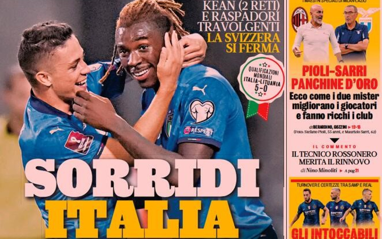 L’Italia si avvicina a Qatar 2022 dopo il successo contro la Lituania. Intanto è già campionato con il big match tra Napoli e Juventus che riscalda la terza giornata, in programma nel weekend. Sono questi i temi sulle prime pagine dei quotidiani in edicola giovedì 9 settembre.