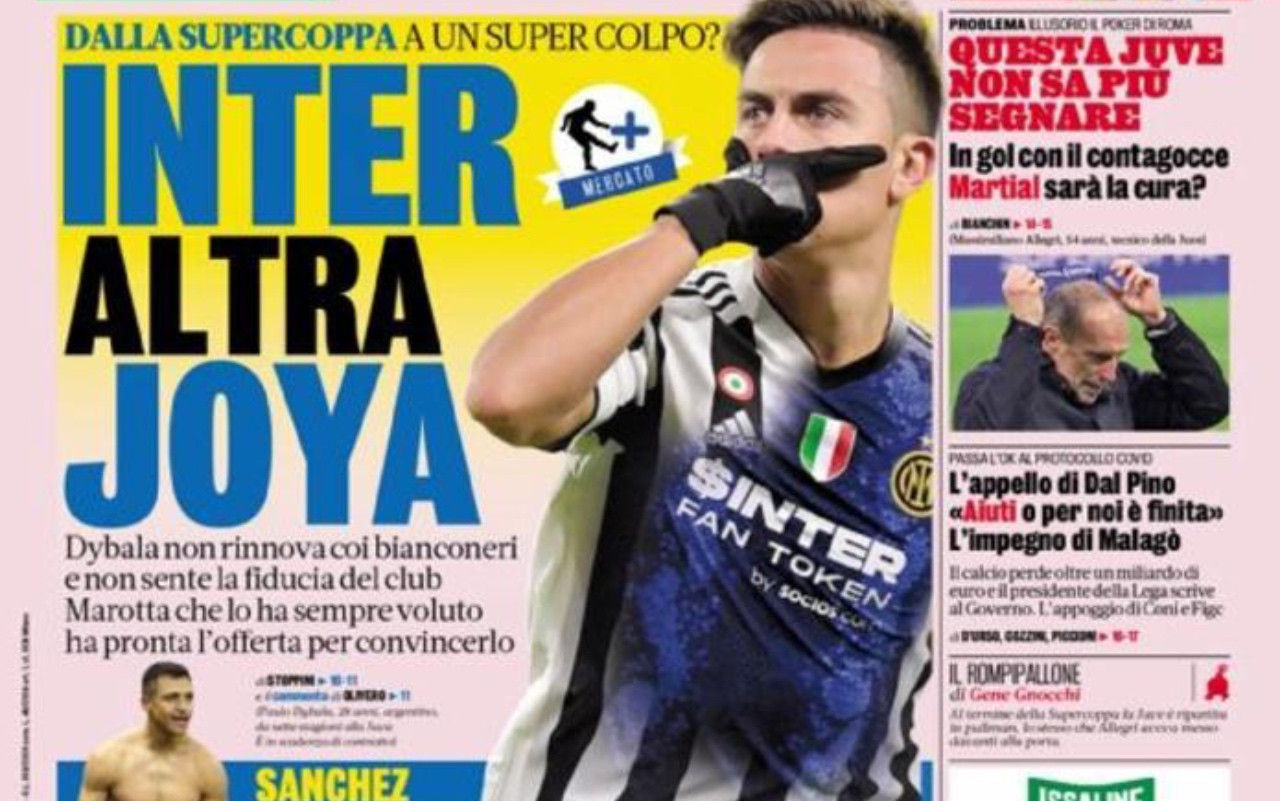Calciomercato protagonista sulle prime pagine dei quotidiani sportivi in edicola: le trattative entrano nel vivo. Ma non solo. Dopo la vittoria di Milan e Fiorentina titoli dedicati alla Coppa Italia: “Viola indomabile, la resa di Spalletti”, “Il ruggito del Leao”,”Coppa amara”, “Giroud e Leao ribaltano Sheva”. Poi, protagonista ancora Dybala e la questione rinnovo: “Juve Dybala, che gelo!”,”Inter, altra Joya. Marotta ha pronta l’offerta per convincerlo”. . Spazio anche all’Inter e alla società nerazzurra: “Fenomeno Inzaghi”.