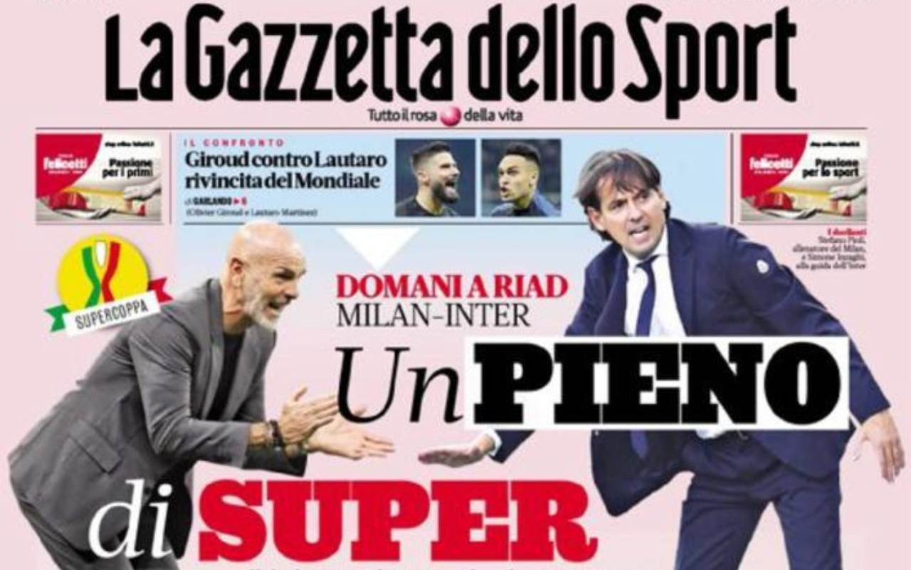 Si è chiusa la 18ª giornata di Serie A: adesso, spazio alla Coppa Italia e alla Supercoppa Italiana, che vedrà sfidarsi Milan e Inter a Riad. Nel frattempo, prosegue il calciomercato, con le venti squadre del campionato concentrate sulle trattative da portare a termine per rafforzarsi. Questo e molto altro sulle prime pagine dei principali quotidiani sportivi e non in edicola martedì 17 gennaio 2023.