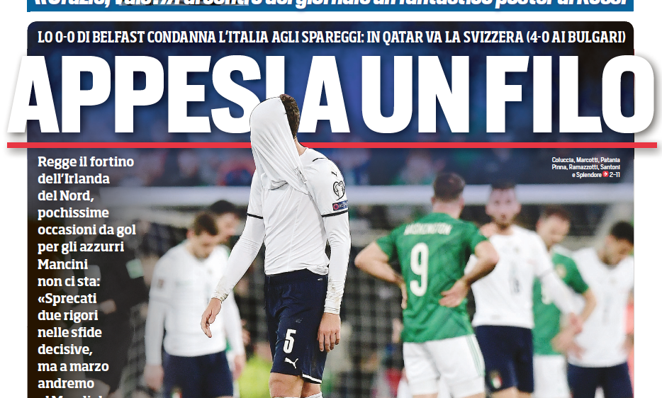 L’Italia per qualificarsi in Qatar dovrà passare dai playoff. Il pareggio contro l’Irlanda del Nord e la vittoria della Svizzera per 4-0 contro la Bulgaria obbligano gli azzurri a vivere di nuovo lo spauracchio dello spareggio, che nel 2017 costrinse l’Italia a salutare il sogno dei Mondiali dopo la doppia sfida contro la Svezia. Il regolamento ora è cambiato e la modalità sarà molto differente.