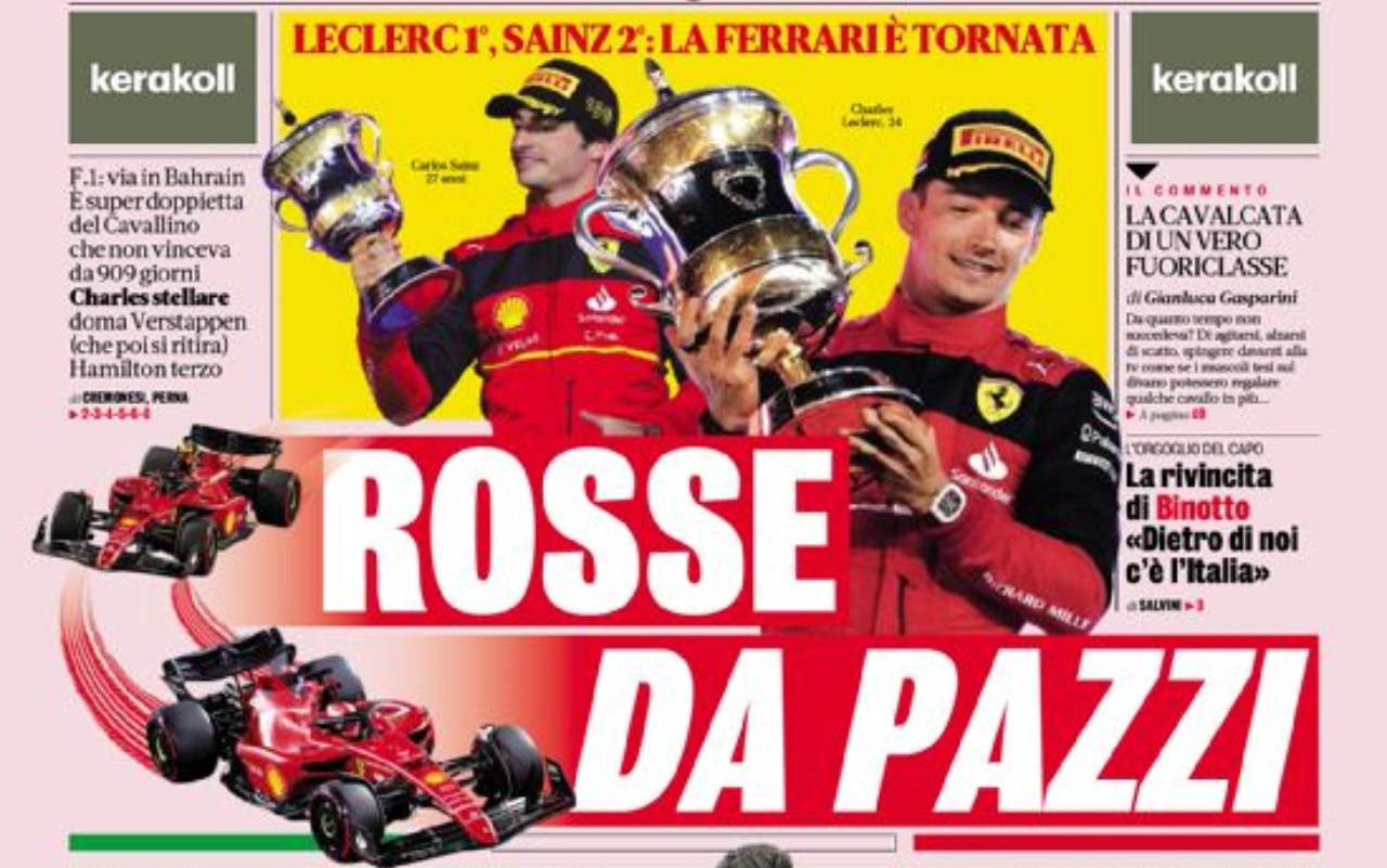 Questi e molti altri temi nelle prime pagine dei quotidiani sportivi e non in edicola oggi.