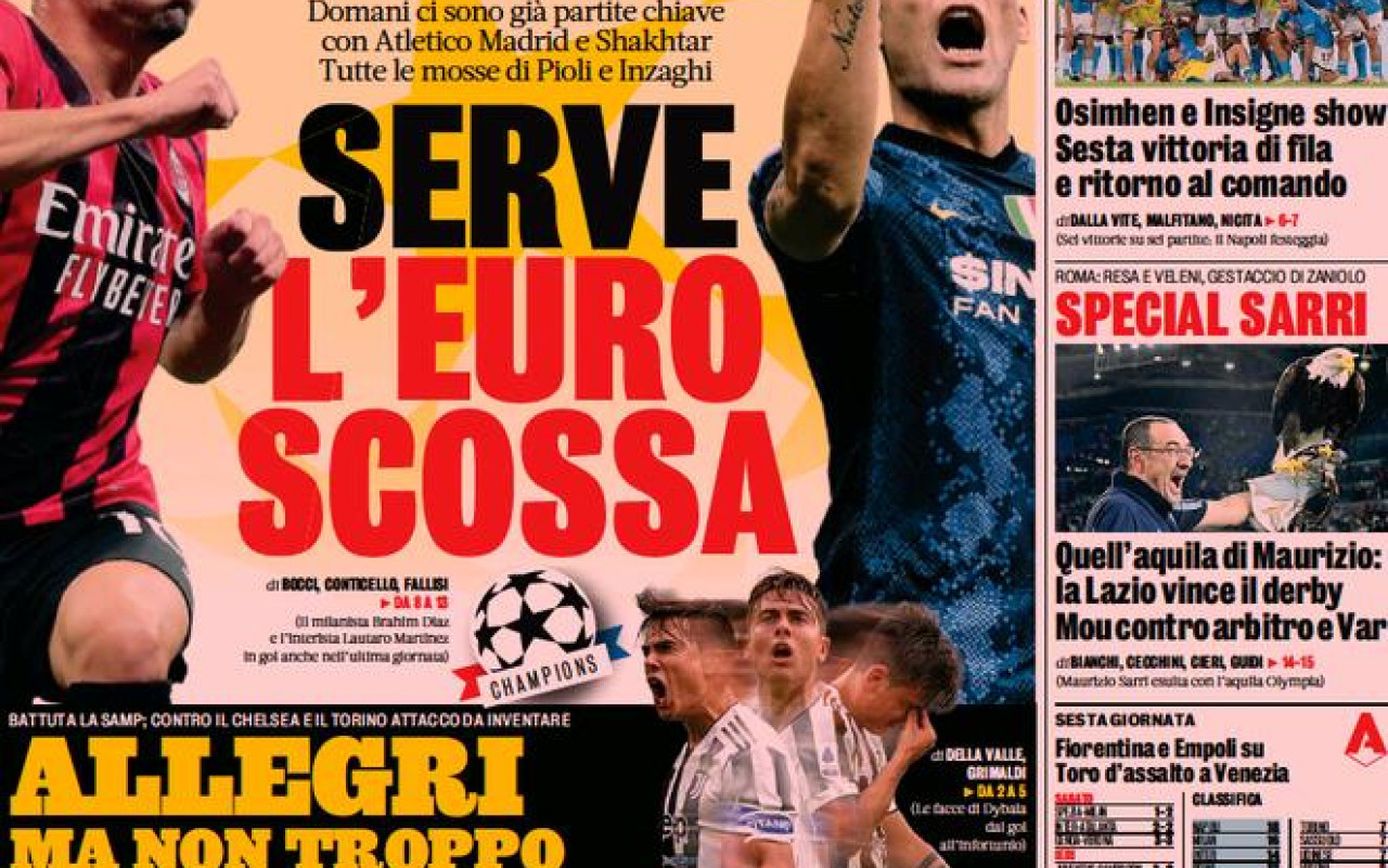 Il Napoli centra il sesto successo consecutivo, la Lazio vince il derby contro la Roma per 3-2 e la Juventus trova il primo sorriso casalingo, ma perde Dybala e Morata per infortunio. La giornata di Serie A si chiuderà domani con Venezia-Torino e poi spazio alle coppe europee prima della settima giornata, quella prima della pausa per le nazionali.