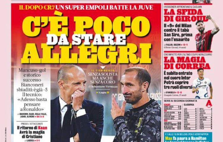 È stato un sabato ricco di tante sorprese di mercato ma anche sul campo: la Serie A prosegue nella seconda giornata e a far rumore sono le sconfitte di Torino e Juventus. Queste, e molti altri, i temi affrontati nei principali quotidiani nazionali ed esteri oggi in edicola.