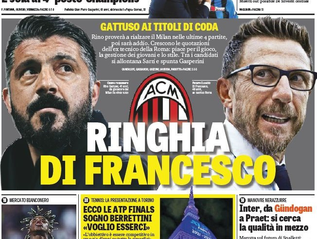La volata Champions entrata ormai nel rush finale, con lo scatto piazzato dall’Atalanta adesso quarta solitaria dopo il successo contro l’Udinese nel posticipo della 34^ giornata di Serie A, poi tanto mercato e un occhio alle semifinali di Champions League. Sono questi i temi principali presenti nelle prime pagine dei quotidiani sportivi in edicola oggi, 30 aprile 2019.