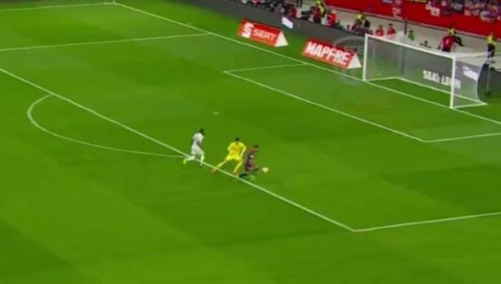 Pallone che finisce sui piedi di Lamine Yamal, che con il suo sinistro pennella un pallone alle spalle della difesa in direzione di Ferran Torres.
