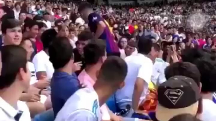 E, ovviamente, i tifosi del Real non ne sono rimasti indifferenti. Tanto che, una volta individuato, lo hanno invitato a togliersela e a gettarla via. Lui, forse conscio dell'errore, non ha esitato a farlo. Nessun tono minaccioso, sia chiaro, ma solo qualche coro e risata. Della serie tutto è bene ciò che finisce bene.