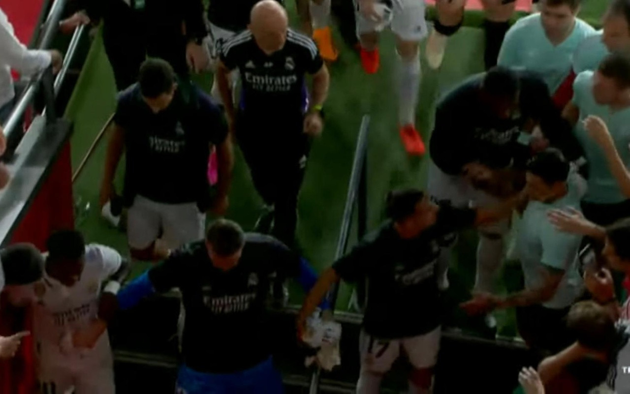 All’ingresso del tunnel, l’ex Flamengo è venuto a contatto con l’attaccante dei rojillos Ezequiel Avila: qualche scambio di parole tra i due, prima che Rudiger e Vasquez li separassero, oltre ad alcuni inservienti e altri giocatori. Al rientro in campo nel secondo tempo, Vinicius è stato accompagnato da Ancelotti che lo ha tenuto sotto braccio per proteggerlo e per tranquillizzarlo.