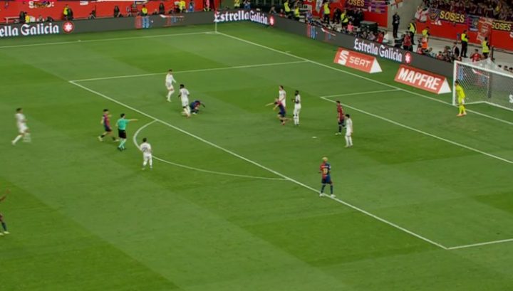 Il Barcellona vede per un attimo la possibilità della controrimonta con un rigore all’ultimo respiro: dopo il vantaggio del Real Madrid e il pareggio di Ferran Torres i blaugrana avevano la possibilità del match winner dal dischetto.
