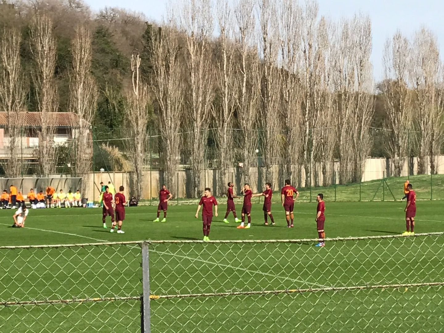 La pausa per gli impegni nazionali come occasione utile per tenere alti i giri del motore giallorosso, tra una sgambata per la prima squadra e la chance di vedere tanti talenti del settore giovanile per testarne le qualità. Nel pomeriggio odierno, a Trigoria, la Roma ha voluto organizzare una partita d’allenamento contro la Primavera giallorossa di De Rossi, aperta al pubblico e con circa 150 tifosi presenti: in campo per Spalletti, oltre a Perotti, Paredes, Fazio, Totti e tanti altri membri della rosa, anche Eros De Santis, terzino classe ’97 proveniente dal vivaio di casa Roma. Allenamento personalizzato in palestra, invece, per Emerson e Grenier: assenti i nazionali Alisson, Szczesny, Manolas, Rüdiger, Vermaelen, De Rossi, Nainggolan, Strootman, Dzeko e Salah, con i Primavera Tumminello, Marchizza, Frattesi e Pellegrini impegnati invece in Under19.