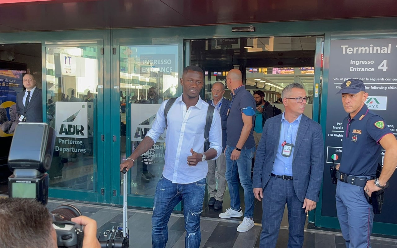 La Roma ha un nuovo centrocampista: Mady Camara è atterrato all’aereporto di Fiumicino, pronto a svolgere le visite mediche e firmare il proprio contratto con la società giallorossa. Camicia bianca, sorriso e pollice alto per Camara, che ha così salutato i presenti all’aeroporto.