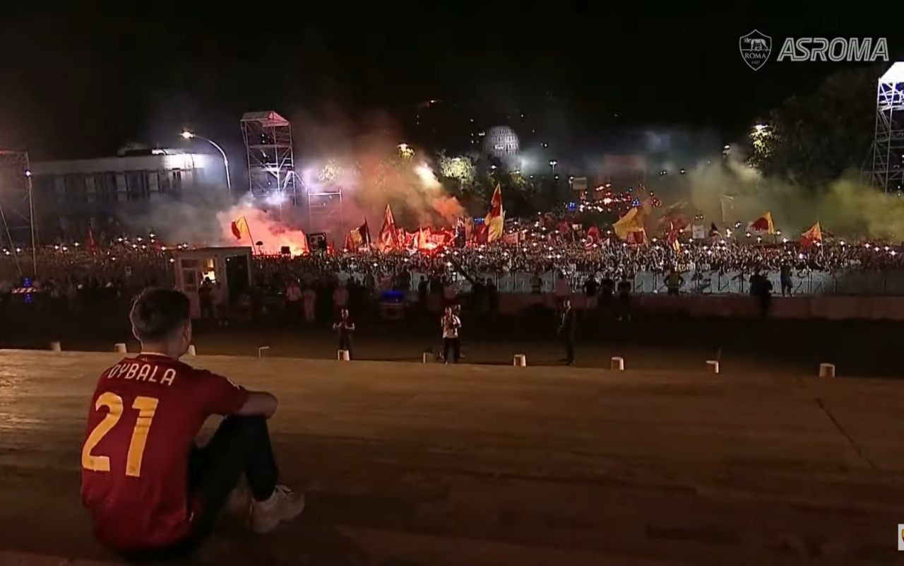 In un vero clima di festa, per i tifosi della Roma è stata la prima vera occasione per mostrare il proprio calore all’ex Juventus, caricandolo in vista dell’inizio della stagione ufficiale. Alle 21:20 circa, Dybala si è affacciato accompagnato da un boato ed esclamando: “Grazie mille, grazie mille per tutto”.