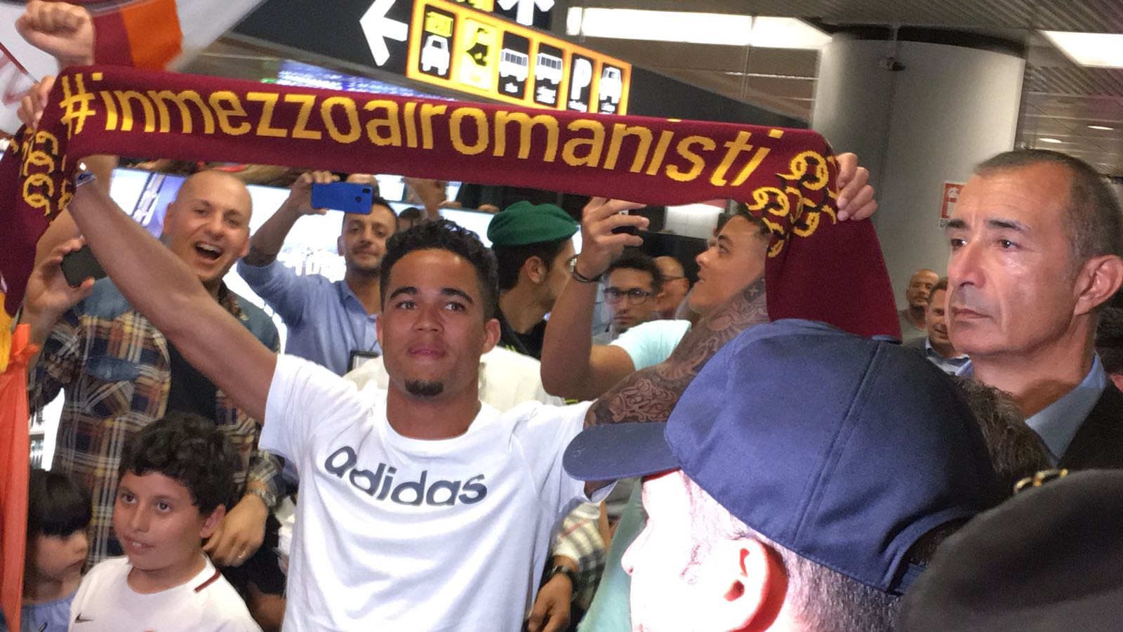 Fino a qualche giorno fa era a Ibiza con gli amici, ora è sbarcato a Fiumicino per iniziare la sua nuova avventura giallorossa. Justin Kluivert è il quarto acquisto della Roma dopo Coric, Marcano e Cristante. L’olandese è atterrato nella capitale dove domani mattina svolgerà le visite mediche prima di firmare il contratto con i giallorossi. Ad attenderlo a Fumicino un centinaio di tifosi, forse anche di più. Che tra un coro