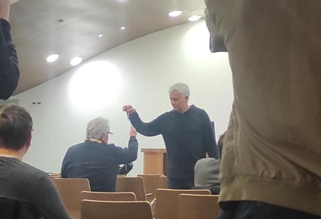 Allo stesso a cui aveva detto di “non piangere più per la finale di Tirana persa” ha regalato un portachiavi della Conference League con lo stemma della Roma.