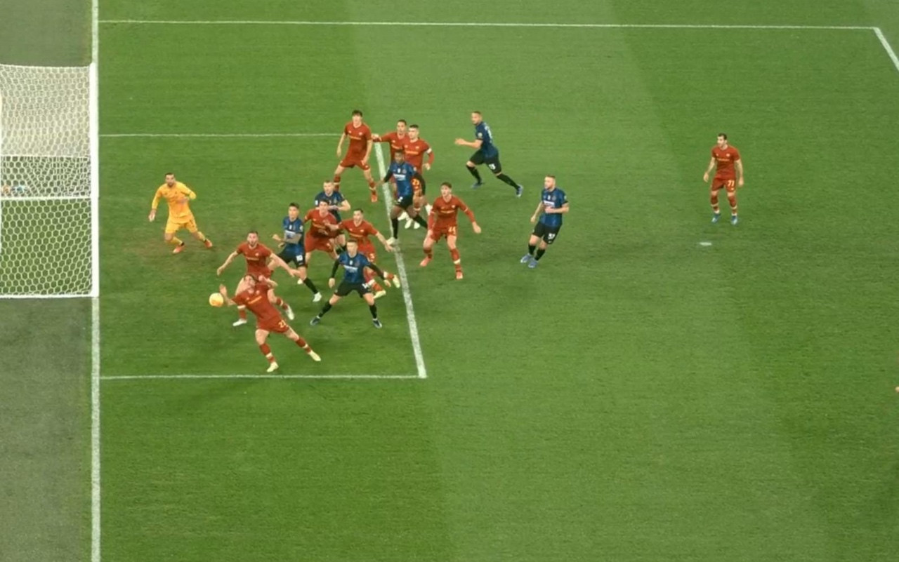 Sotto gli occhi di Francesco Totti, tornato allo stadio dopo 2 anni, è l’Inter a passare in vantaggio grazie a una perla di Hakan Calhanoglu direttamente da calcio d’angolo.