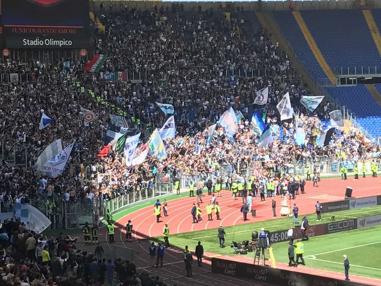 La Lazio vince per 3 a 1 il quarto derby stagionale. Tre punti fondamentali per la rincorsa all’Europa League per i biancocelesti, arrivati grazie all’ottima prestazione di Keita autore di una doppietta. Dopo il triplice fischio finale è esplosa l’esultanza dei tifosi laziali che insieme ai giocatori hanno festeggiato sotto la Curva Nord la seconda stracittadina vinta in stagione, la prima in campionato dall’11 novembre 2012. Ecco le immagini della festa biancoceleste