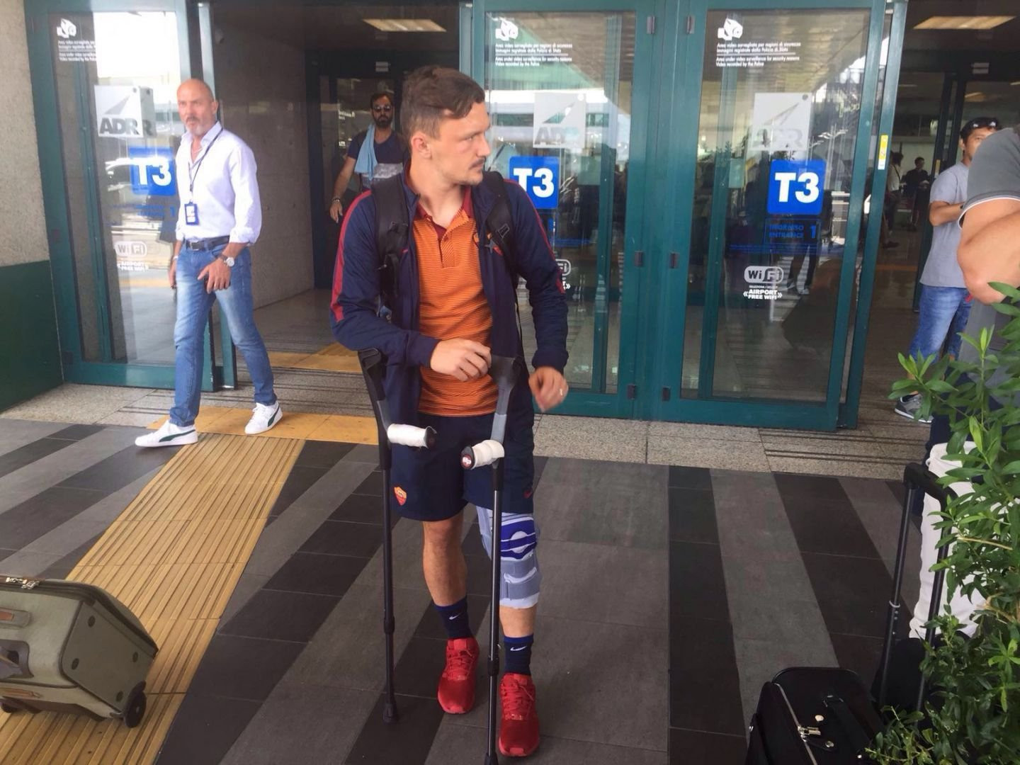 Certamente l’inizio della sua avventura giallorossa l’avrebbe immaginato diverso Mario Rui, infortunatosi immediatamente e ora destinato ad un lungo stop. L’ex terzino sinistro dell’Empoli ha riportato una lesione di alto grado del legamento crociato anteriore. Infortunio che lo ha costretto ad un intervento chirurgico artroscopico, a cui sarà sottoposto nella giornata di venerdì a Villa Stuart. Nel frattempo Mario Rui è rientrato a Roma, ecco la foto del suo arrivo all’aeroporto di Fiumicino:
