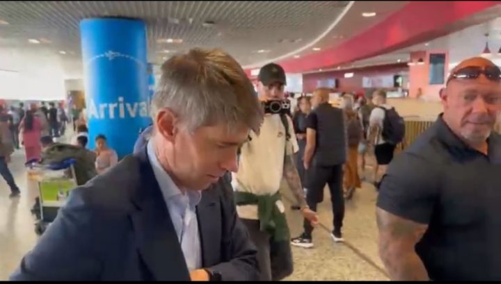 Frederic Massara è arrivato all’aeroporto di Birmingham per unirsi al gruppo squadra della Roma in Inghilterra.