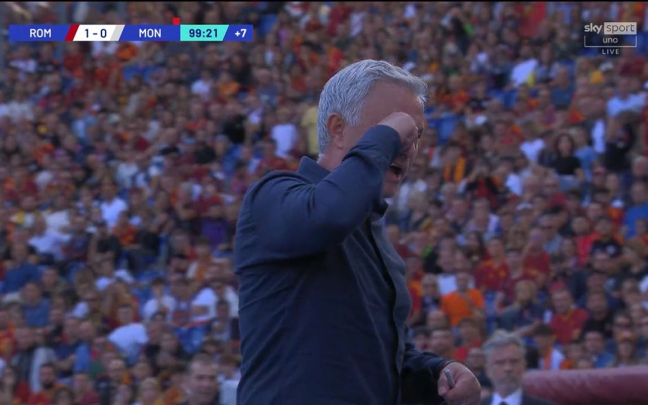 Minuto 99 di Roma–Monza. I giallorossi hanno vinto il match per 1-0 grazie alla rete di Stephan El Shaarawy; a pochi minuti dal termine della partita José Mourinho è stato espulso.