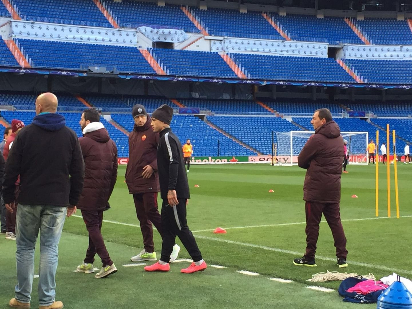 Concentrazione e tanta voglia di provare a centrare un risultato storico, come otto anni fa. Così Perotti e compagni stanno svolgendo l’allenamento di rifinitura sul campo del Santiago Bernabeu. Ansia e un po’ di preoccupazione, invece, per Radja Nainggolan che dopo una smorfia di dolore è stato costretto ad abbandonare la seduta. Spalletti lo ha rincuorato e lo ha fatto uscire dal campo.