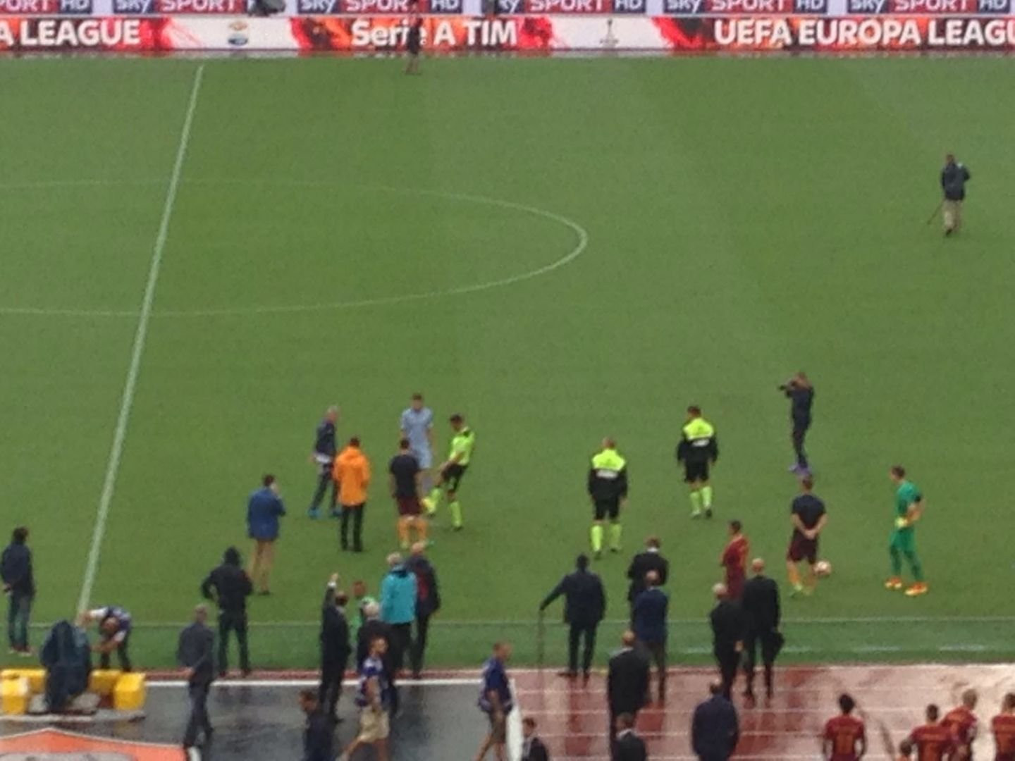 Oltre un’ora di sospensione causa pioggia, ma adesso la partita può proseguire. Interrotta per un violento temporale sull’Olimpico, Roma-Sampdoria può continuare da dove era finita (1-2 all’intervallo). Poco fa l’arbitro Giacomelli ha fatto l’ultimo sopralluogo per verificare le condizioni del terreno di gioco: il sistema di drenaggio dell’impianto ha sostenuto i litri d’acqua caduti ed ora è dunque possibile proseguire e terminare la gara.