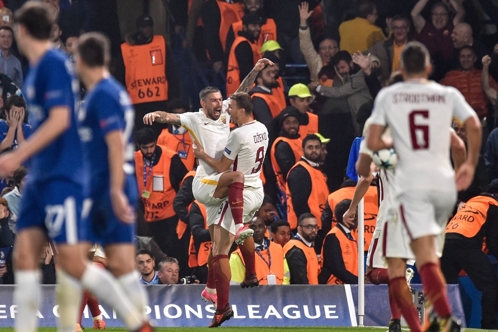 Alla fine i rimpianti sono colorati di giallorosso. Chelsea e Roma pareggiano per 3-3, ma da Stamford Bridge chi esce con l’amaro in bocca è certamente la squadra di Di Francesco. Padrona del campo per lunghissimi tratti di gara, ha messo alle corde il Chelsea di Conte. Sempre il pallino del gioco in mano, ma ancora non così matura da gestire la gara. Due errori individuali hanno portato due gol al primo tempo e la non abitudine ad amministrare al pareggio finale. Ma i giallorossi ci sono andati vicino. L’anima slava della Roma stava per realizzare l’impresa della stagione. Espugnare lo stadio dei Campioni d’Inghilterra. Kolarov-Dzeko, praticamente fratelli fuori dal campo e stasera leader e trascinatori della Roma londinese. Il primo grazie al gol della speranza al primo tempo, dopo l’avvio shock con il doppio svantaggio Chelsea firmato David Luiz e Hazard e Dzeko con una doppietta da campione assoluto. Hazard ha spento i sogni di conquista, ma la Roma vista a Stamford Bridge è una squadra vera. Un top team, così come chiesto da Di Francesco alla vigilia. “Voglio una reazione dopo la sconfitta di Napoli”. E la squadra ha risposto presente, soprattutto dal punto di vista psicologico dopo un 2-0 che avrebbe ucciso chiunque.