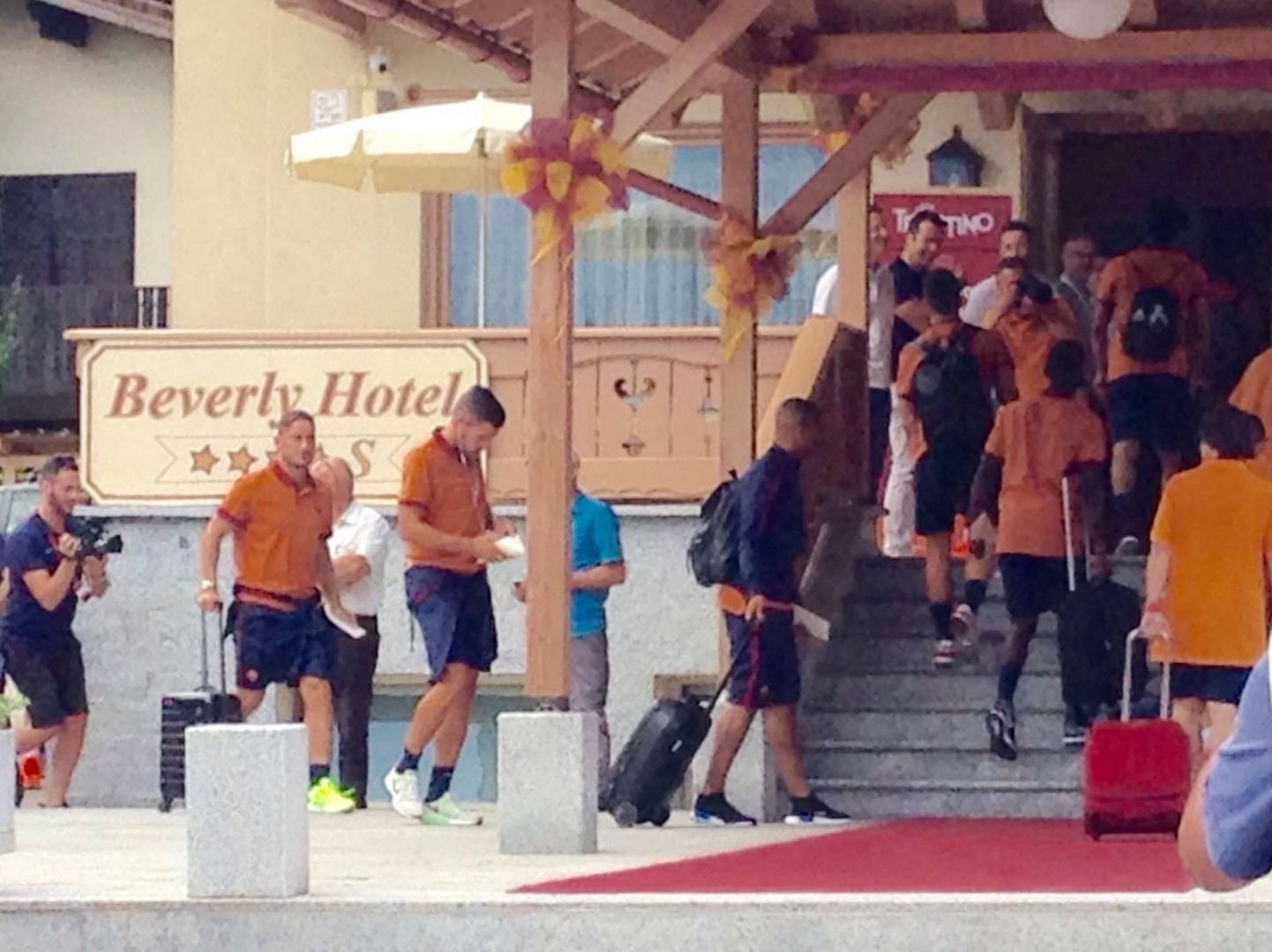 Tra l’entusiasmo generale di bambini, famiglie, tifosi o semplici curiosi, la Roma è arrivata al ritiro estivo di Pinzolo questo pomeriggio. Cori da stadio per tutti. Ovviamente il più acclamato è stato ovviamente il capitano, Francesco Totti.