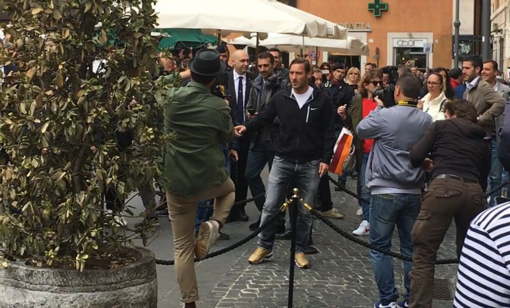 Tanta euforia per l’arrivo di Totti al ‘Totti X Roma’. In occasione dell’evento, centinaia di tifosi hanno atteso il calciatore giallorosso per scattare qualche foto con lui e per provare ad acquistare i soli 2500 scarpini messi sul mercato (qui le foto). Una volta entrato nello store il capitano della Roma ha rilasciato alcune dichiarazioni al giornalista Pierluigi Pardo: “Il gol più bello? Sono indeciso se contro l’inter a Milano o contro la Sampdoria a Genova, mentre il calciatore con cui mi sono divertito di più è sicuramente Cassano. Invece uno con cui mi sarebbe piaciuto giocare era Ronaldo, il fenomeno. Si passa poi all’aspetto culinario:Carbonara o Matriciana? Nessuna delle due, non amo particolarmente la cucina romana . Al contrario la cacio e pepe mi piace molto. Mio tennista preferito? Federer, è il più forte. Mi rivedo anche molto in lui”.