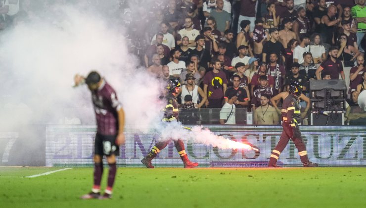 Salernitana e Sampdoria sono rimaste per mezz’ora negli spogliatoi, poi sono rientrate nel tentativo di riprendere il gioco con lo stadio che – intanto – si era lentamente svuotato.