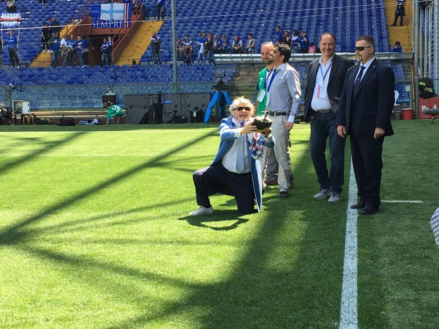 Derby della Lanterna storico. Non solo per lo spettacolo che offriranno in campo Genoa e Sampdoria, ma per il…drone. E’ un esperimento della Lega per la prima volta. Servirà a capire dove il campo andrà bagnato di più o di meno, dando anche informazioni dove il campo sarà più lento o veloce e soprattutto dove la palla rimbalzerà meglio. Il tutto per far guadagnare spettacolo al calcio. Drone che ha già conquistato il presidente della Samp Ferrero, come dimostra la fotogallery.