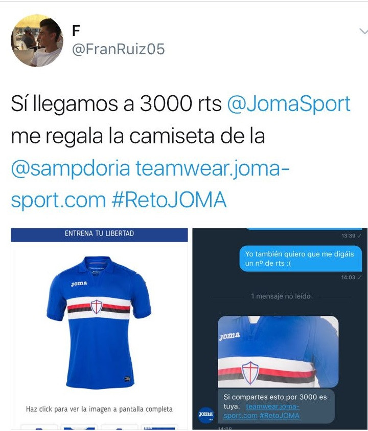 “Buonasera, sono innamorato della maglia della Sampdoria, quanti retweet