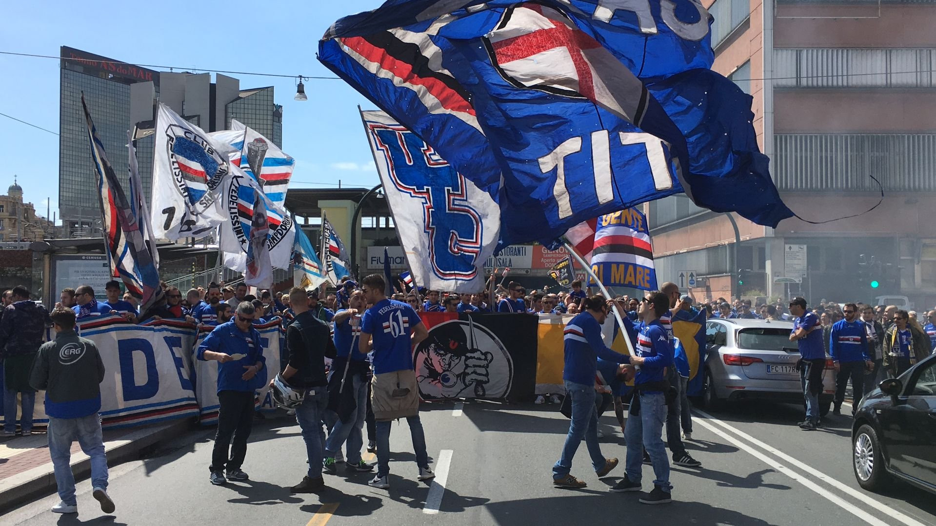 Una sfida da vincere, per avvicinare sempre di più l’obiettivo salvezza lì a portata di mano. È quella della Sampdoria, impegnata questo pomeriggio al Ferraris di Genova con l’Udinese di De Canio: appuntamento assolutamente da non sbagliare per Soriano e compagni, obbligatorio quindi dare tutto in campo e anche sugli spalti. A saperlo bene i tifosi blucerchiati, che proprio per questo motivo in settimana si sono dati appuntamento a qualche chilometro da Marassi per raggiungere lo stadio tutti assieme. “Domenica ci aspetta l’ennesima battaglia, una battaglia che dobbiamo fare nostra a tutti i costi. Ma se vogliamo vincere, c’è bisogno di tutti – l’appello di Ultras e Fedelissimi – Domenica quindi, dobbiamo entrare in Gradinata più carichi che mai… più sampdoriani che mai! Per questo, abbiamo deciso di organizzare un corteo, che si dirigerà verso la Sud”. Corteo che proprio in questi minuti si è messo in viaggio, destinazione Marassi: per l’ennesima battaglia da vincere, per dare la spinta decisiva ai ragazzi di Montella e trascinarli verso quella che sarebbe un’importantissima vittoria. Ecco tutte le immagini del corteo dei tifosi blucerchiati.