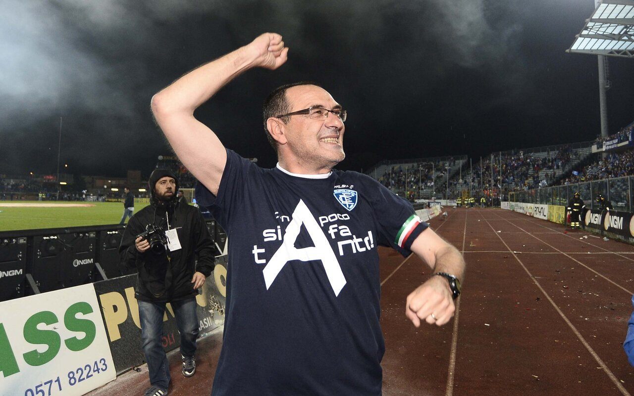 È l’estate del 2012. Sarri si è già fatto strada tra serie minori e campi polverosi, nel calcio che conta è approdato con Pescara, Arezzo e Avellino. Il suo nome è legato a un gioco divertente, e allo stesso tempo efficace. L’Empoli decide di puntarci. E lui, cresciuto in Toscana, accetta con entusiasmo. È l’occasione giusta e la sfrutta al meglio. Un quarto posto in Serie B, poi la Serie A con tre turni di anticipo al secondo tentativo. Il resto è storia.