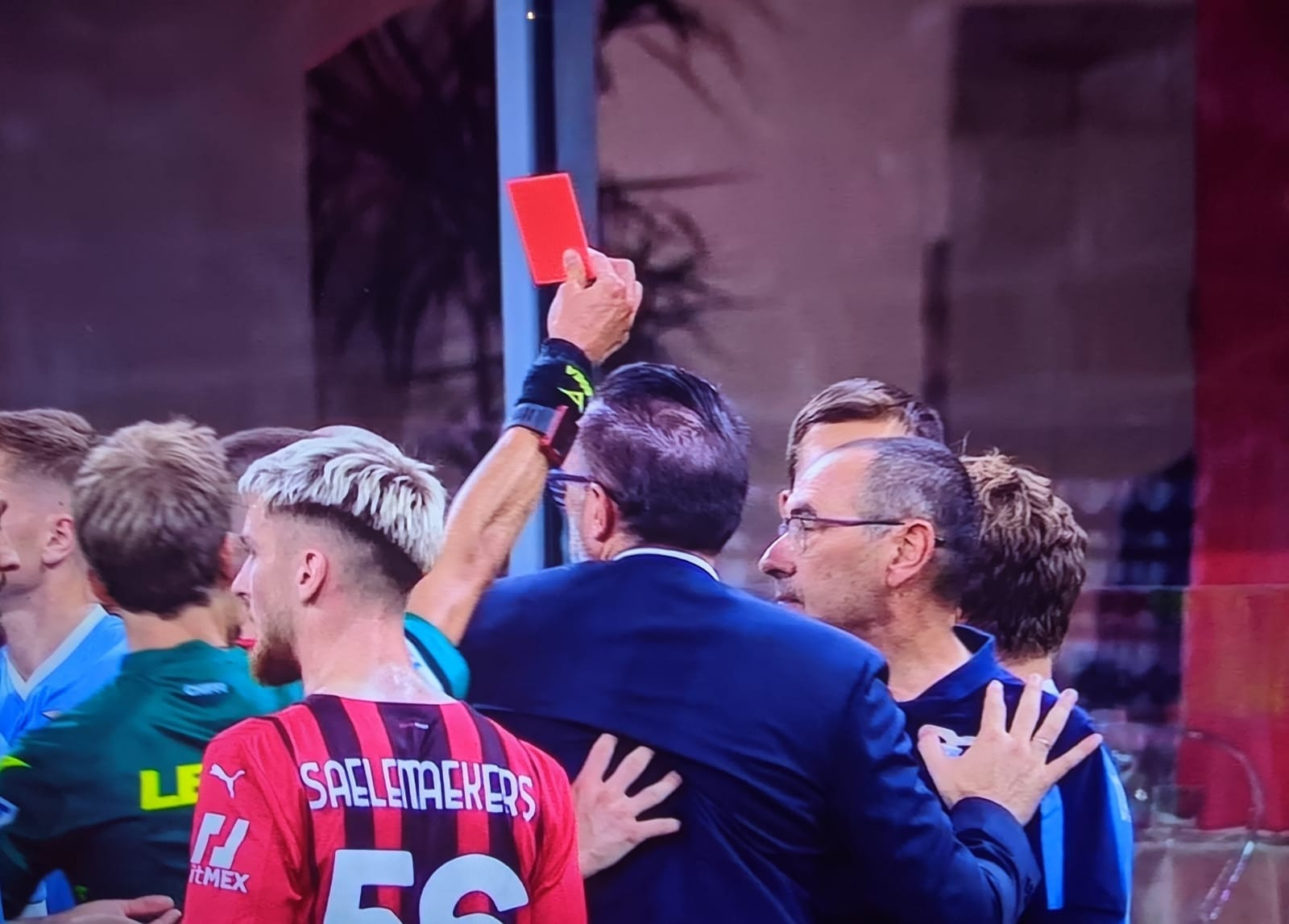 Sarri però, non ci sta: “Non me l’aspettavo – spiega – Ho una giornata per atteggiamento minaccioso. C’è una fotografia dove l’arbitro estrae il rosso e 30 centimetri di fianco c’è un giocatore del Milan che metti le mani sul collo a un mio giocatore. Nel sottopassaggio ho preso l’altra giornata di squalifica perché ho detto all’arbitro ‘hai permesso che mi prendesse per il culo un ragazzino per un quarto d’ora”.