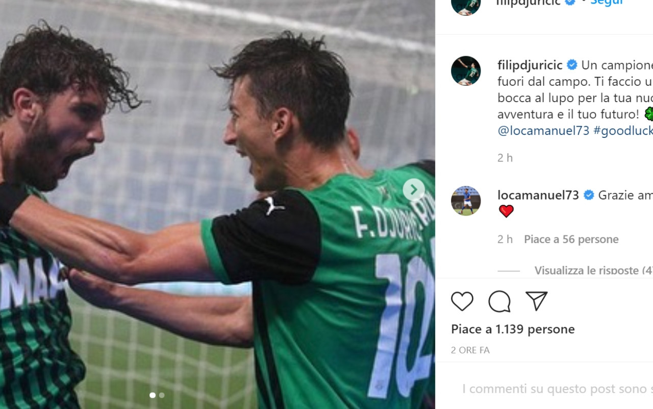 Tanto è vicino il cambio di squadra a formalizzarsi che, in attesa dell’ufficialità, Locatelli ha già ricevuto i suoi primi saluti dagli ormai ex compagni del Sassuolo. È il caso di Filip Djuricic, che gli ha dedicato un post sul suo account Instagram.