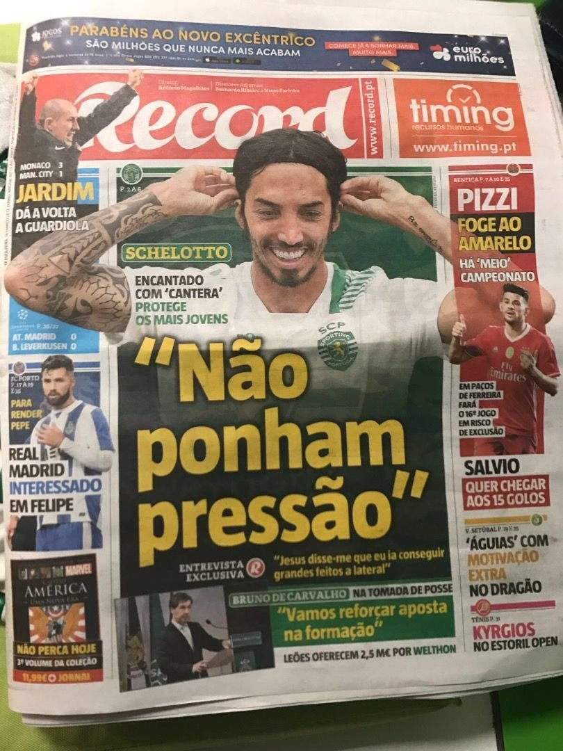 Il Galgo ha conquistato il Portogallo. Una stagione magica, quella che sta vivendo Ezequiel Schelotto allo Sporting. Personaggio del momento a Lisbona nella squadra di Jorge Jesus dove l’ex esterno di Inter e Atalanta sta brillando, come si vede dai quotidiani principali del Portogallo: quindici presenze in campionato, tre in Champions League, un’annata da protagonista. E la prima pagina di Record è eloquente, in tal senso: “Sta incantando“, si legge per l’intervista a Schelotto. “Se mi chiamerà la nazionale dell’Argentina sarà grazie allo Sporting“, confessa. Perché si fa spazio anche l’ipotesi Seleccion: “Non possiamo mettere pressione ai giovani, aspettiamoli perché ce ne sono tanti bravi. Io continuo a voler dare tutto: un assist è come un gol, per un esterno come me”. E in Portogallo, decolla Schelotto…