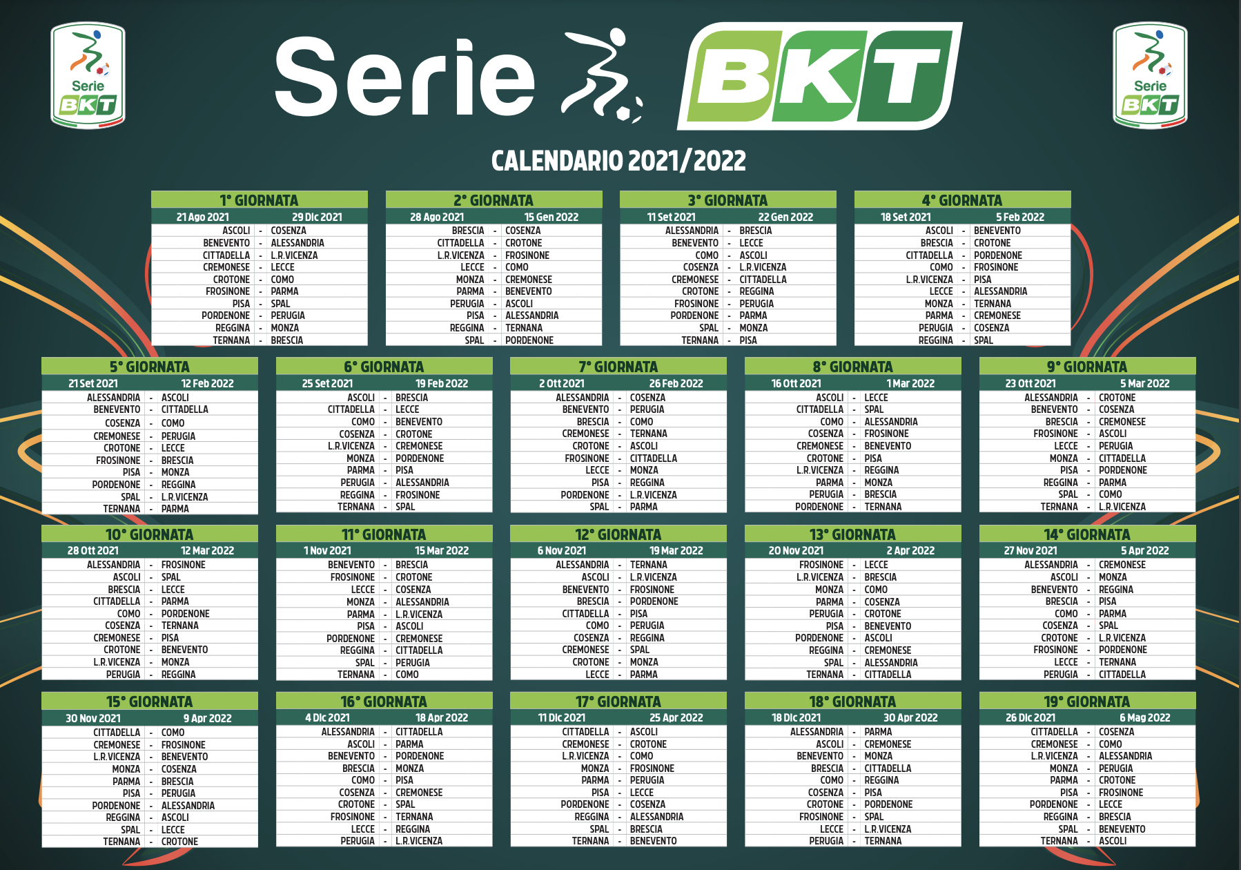 Lo scorso 24 luglio è stato svelato il calendario del campionato di Serie B 2021/22 con la presentazione a Ferrara. In quell’occasione, una X segnava chi avrebbe partecipato al campionato tra Chievo Verona e Cosenza, in seguito all’esclusione della prima poi discussa con un ricorso.