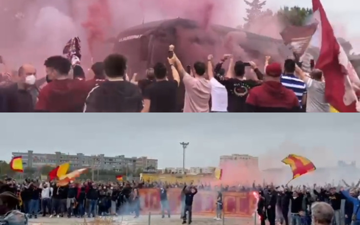 Le due squadre sono state incitate dai tifosi, scesi in strada con bandiere e fumogeni per caricare i giocatori nella corsa verso la A.