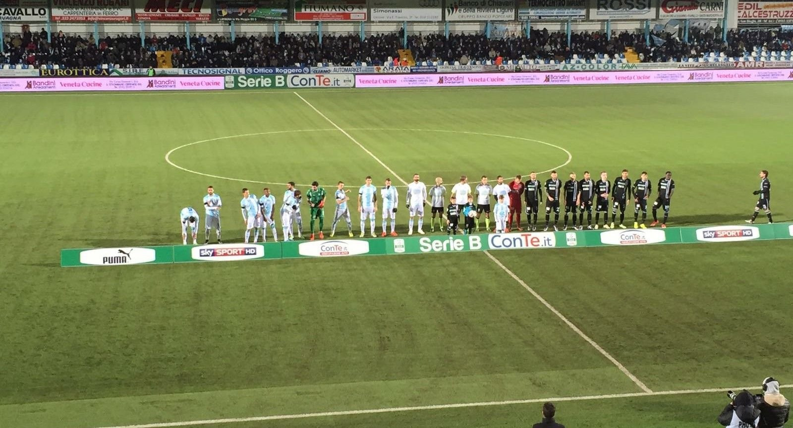“Non chiamatemi più sorpresa”, sembrerebbe voler affermare la squadra di Aglietti. Al ‘Comunale’ va in scena la partita perfetta dell’Entella: dopo la commozione provocata dalla cerimonia per ricordare Sergio Vezzoso, ex difensore di entrambe le squadre oggi in campo ed il minuto di raccoglimento per la recente scomparsa dell’ex presidente biancoceleste Vittorio Chiesa, i ‘Diavoli Neri’ segnano quattro reti tutte nel primo tempo e tornano ad insediare le zone nobili della classifica. A partire meglio nella prima frazione è però l’Ascoli, che tuttavia dopo il gol ad opera di Masucci si disunisce subendo successivamente la doppietta di un Ciccio Caputo “on fire” (arrivato a quota 10 nella classifica marcatori) e la rete di Iacoponi. Il secondo tempo è di ordinaria amministrazione: c’è solo spazio per la contestazione dei tifosi ospiti che abbandonano lo stadio al 5′ ed il rigore sbagliato da Cacia, a testimoniare il momento no. Termina così con la festa e gli applausi della Curva Sud, in festa e senza voce per il sostegno offerto ai propri beniamini per tutti i 90′. Entusiasmo contagioso e morale alle stelle: l’Entella non è più una sorpresa.