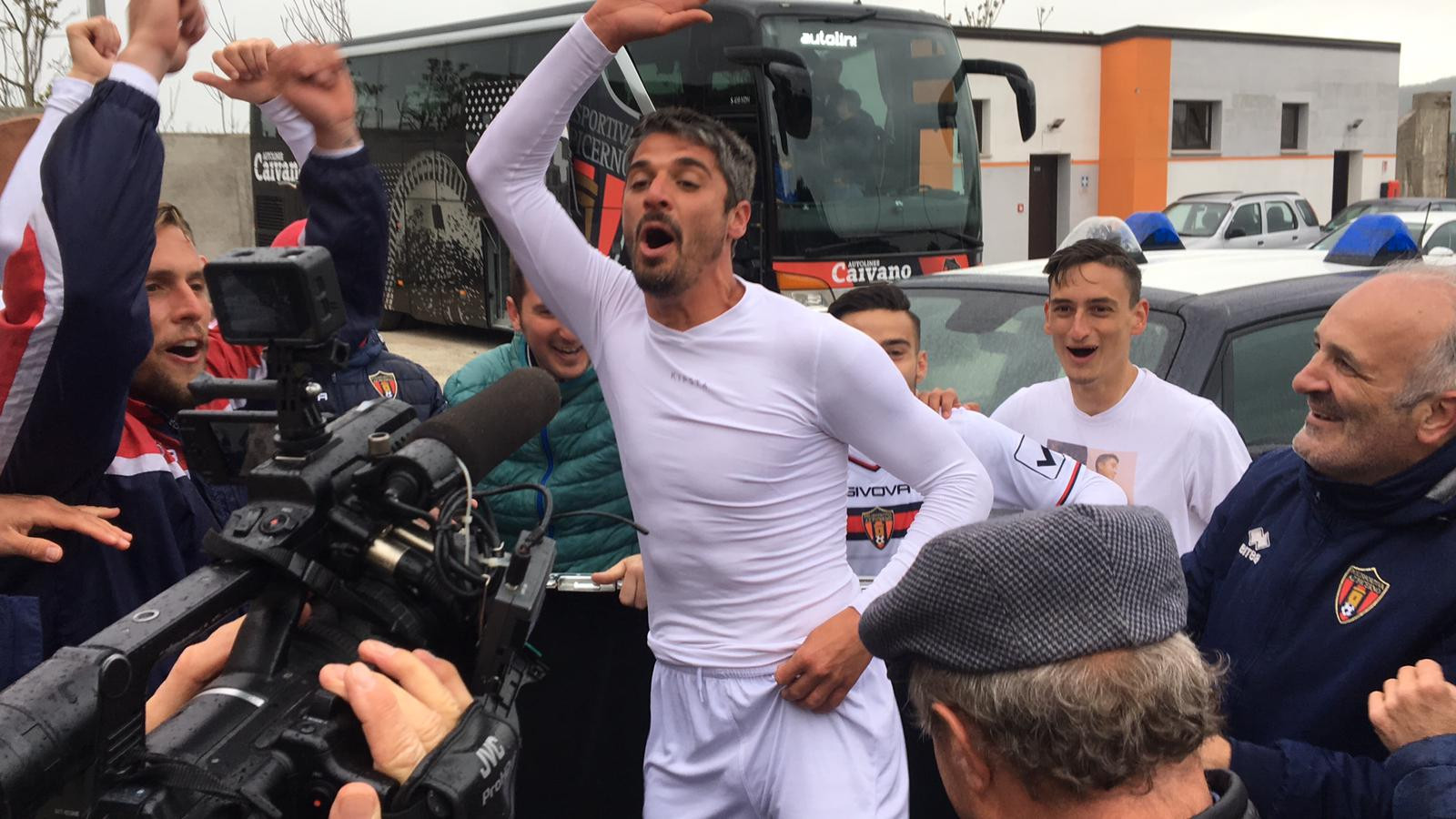 L'Az Picerno può festeggiare la promozione in Serie C. Dopo la penalizzazione di tre punti occorsa negli scorsi giorni, la vittoria di oggi sul Bitonto col punteggio di 3-2 vale l'aritmetica promozione tra i professionisti, conquistato all'ultima giornata di campionato. In alto le immagini dei festeggiamenti della squadra.