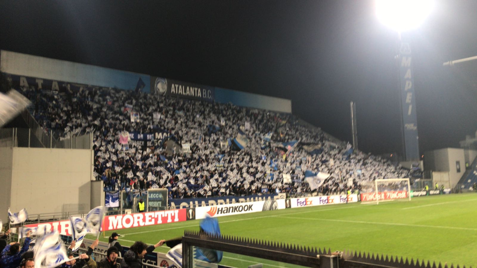Partita che può valere il primo posto del girone per l’Atalanta che, proprio in questi minuti, è scesa in campo al Mapei Stadium, laddove affronterà il Lione. Pubblico delle grandi occasioni, dunque, per la squadra nerazzurra, i cui tifosi non si sono di certo fatti spaventare dai chilometri e dal freddo. Anzi, la Curva Nord ha preparato una bellissima coreografia che ha coinvolto tutto lo stadio. 15 000 bandierine distribuite in ogni settore, che sono state sventolate al momento dell’ingresso in campo delle squadre. Uno spettacolo notevole, che per un attimo ha lasciato pensare che il calcio d’inizio si sarebbe giocato a Bergamo piuttosto che a Reggio Emilia. Un modo questo per ringraziare Gasperini e i suoi ragazzi che, oltre ad aver ottenuto una qualificazione che sembrava molto difficile al momento del sorteggio, questa sera lotteranno per concluderlo addirittura al primo posto.