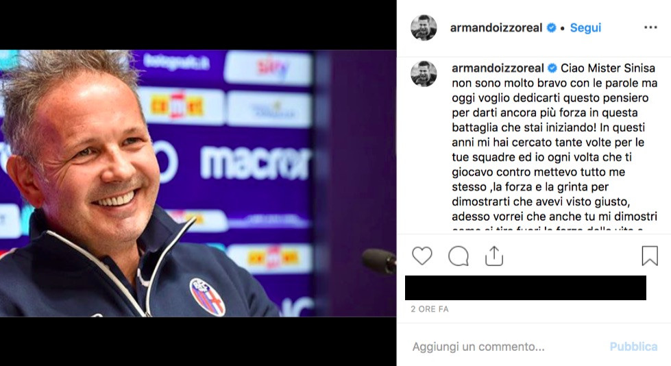 Armando Izzo ha espresso così la sua vicinanza: “In questi anni mi hai cercato tante volte per le tue squadre ed io ogni volta che giocavo contro di te mettevo tutto me stesso, la forza e la grinta per dimostrarti che avevi visto giusto, adesso vorrei che anche tu mi dimostrassi come si tira fuori la forza della vita e come si batte la malattia che tanti anni fa ha portato via il mio papà, il mio tutto!… Ti aspetto, ti sono vicino”