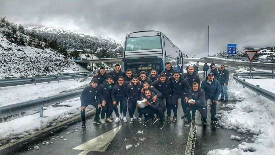 Quindi, che fare? Si torna a casa, ma non senza problemi. Anche nel viaggio di ritorno, infatti, l’autobus che trasportava la squadra ha vissuto nuovamente un imprevisto ed è stato bloccato dalle cattive condizioni metereologiche. Tutto il gruppo si è quindi fermato a Vega de Valcarce, obbligato a restare una notte in hotel perché la neve non permetteva all’autista di procedere nel viaggio. Così il Paiosaco ha pensato bene di immortalare il momento con una fotografia per ricordare la giornata surreale vissuta senza poter nemmeno giocare la partita in programma.