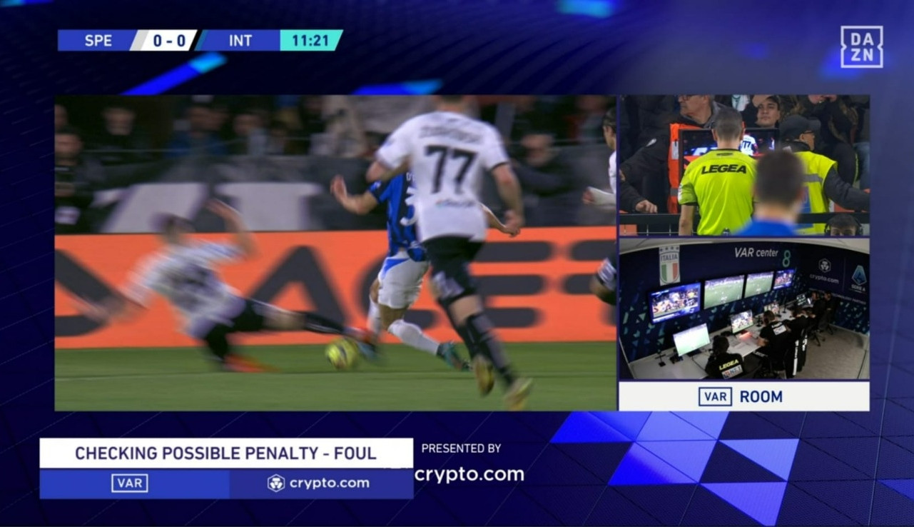 Calcio di rigore assegnato all’Inter al quattordicesimo minuto nella partita contro lo Spezia, la prima della ventiseiesima giornata di Serie A.